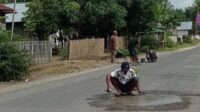 Warga desa Sonuo Cor Jalan Yang Berlubang: Khawatir Terjadi Kecelakaan