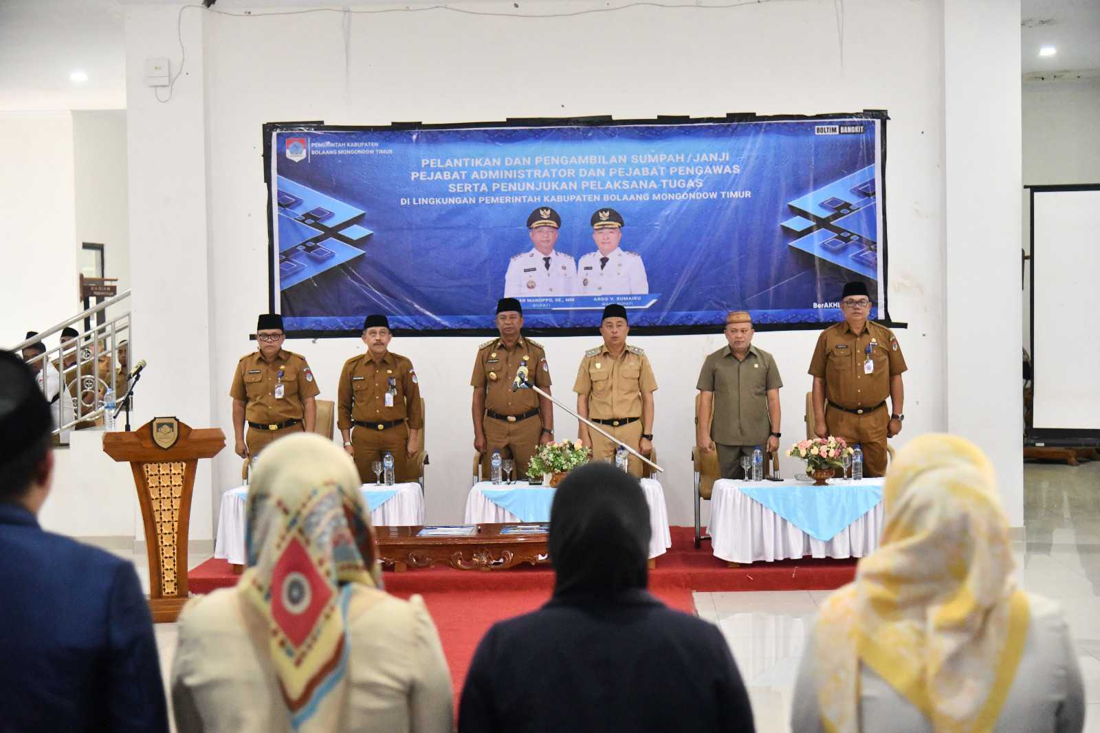 BOLTIM, SULAWESION.COM –Bupati Bolaang Mongondow Timur (Boltim) Oskar Manoppo, didampingi Wakil Bupati Argo Sumaiku, melantik Pejabat Administrator dan Pejabat Pengawas, serta menunjuk Pelaksana Tugas di lingkungan Pemerintah Kabupaten Boltim, pada Senin 3 Nopember 2025.