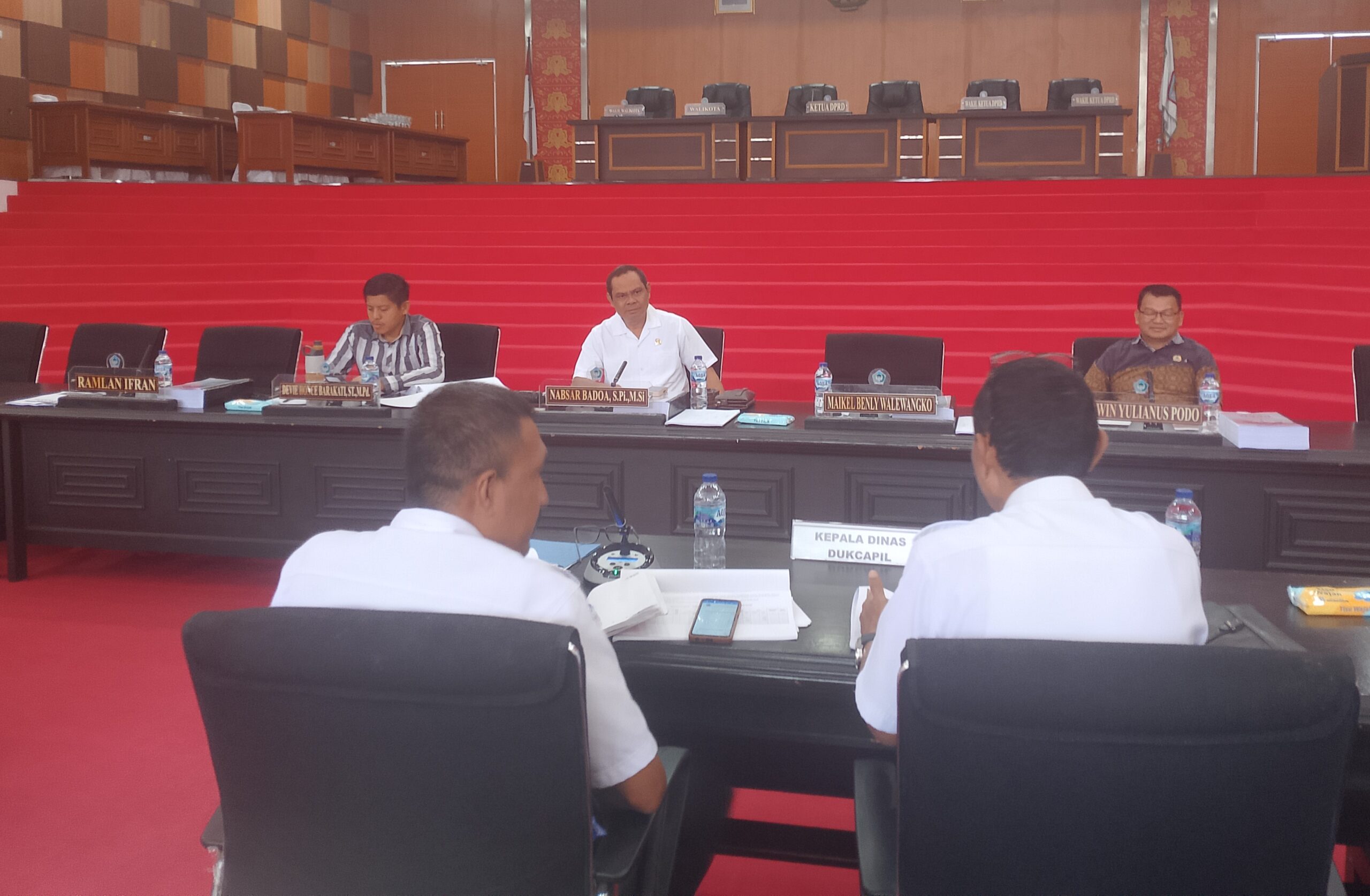 Rapat kerja yang dipimpin oleh Ketua Komisi I DPRD Nabsar Badoa itu mengundang sejumlah mitra kerja, termasuk Dinas Kependudukan dan Pencatatan Sipil (Disdukcapil).