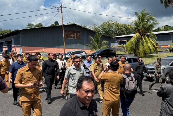 Gubernur Sulut Yulius Selvanus saat tiba di Gudang Bulog Bitung. (Dokumentasi | Ist)