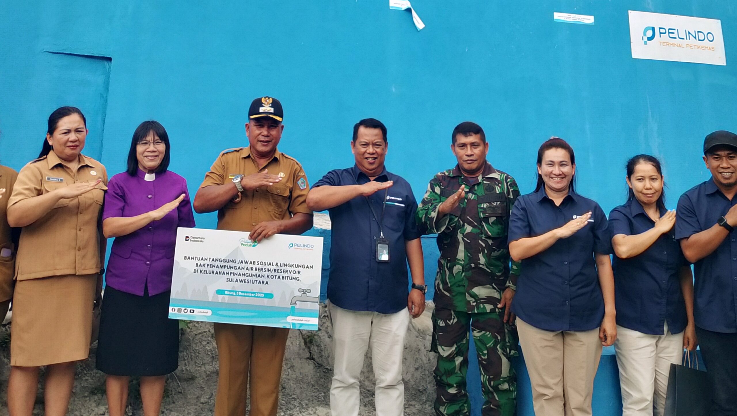BITUNG, SULAWESION.COM – PT. Pelindo Terminal Petikemas TPK Bitung lewat program TJSL (tanggung jawab sosial dan lingkungan) memberikan bantuan bak air di Kelurahan Pinangunian, Kecamatan Aertembaga, Selasa (23/12/2025).