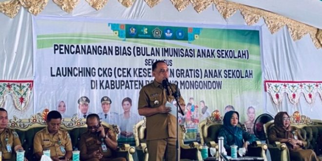 BOLMONG, Sulawesion.com – kegiatan Pencanangan BIAS (Bulan Imunisasi Anak Sekolah) sekaligus Launching CKG (Cek Kesehatan Gratis) Anak Sekolah di Kabupaten Bolaang Mongondow (Bolmong) digelar. Selasa 05/08/2025.
