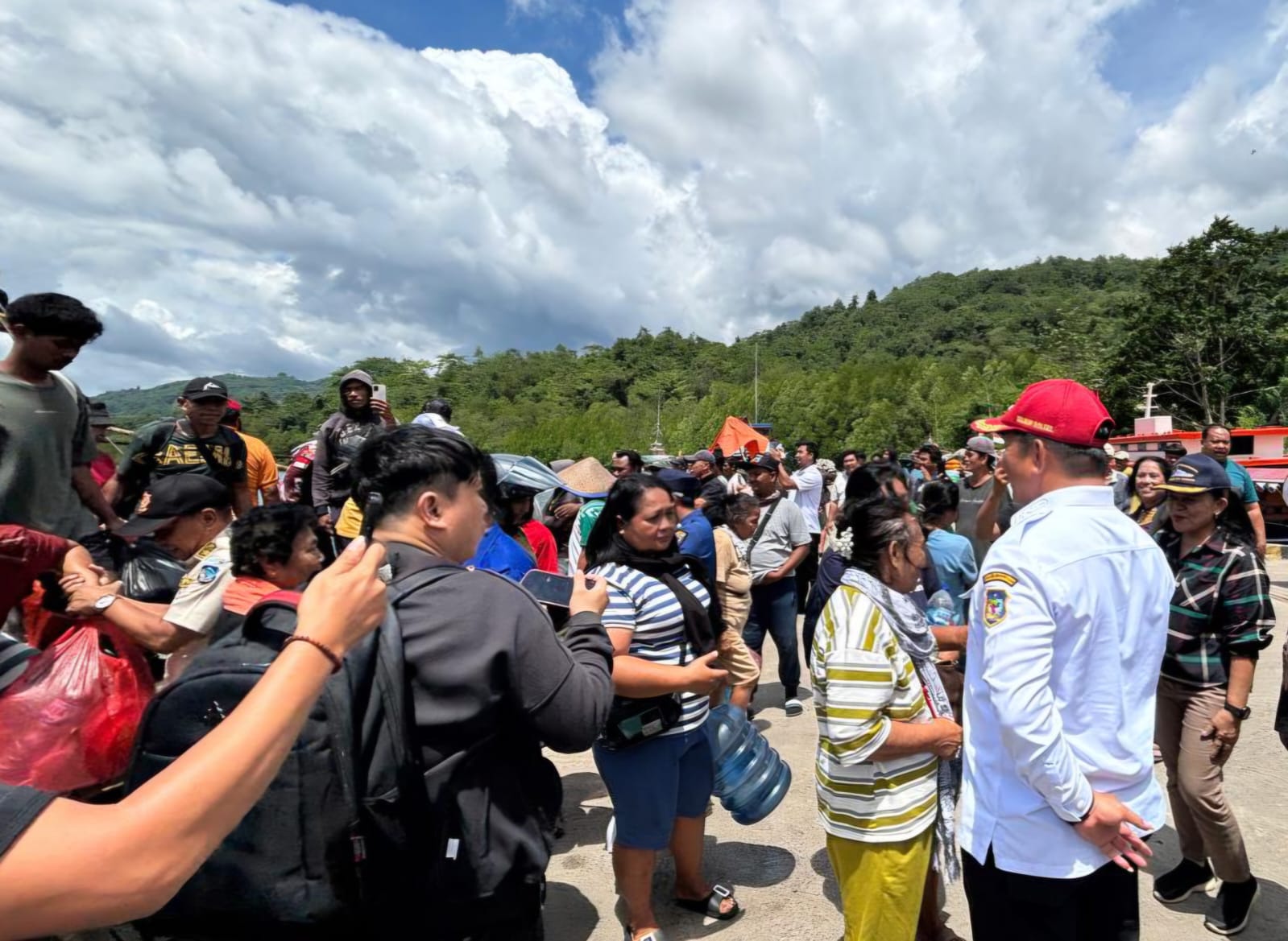 Sebelumnya, para warga diberangkatkan dari Pelabuhan Bitung pada Senin 9 Februari 2026 pukul 21.30 WITA menggunakan dua kapal feri.