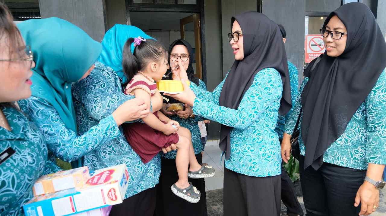 Dalam kegiatan tersebut juga dilaksanakan penyerahan makanan tambahan dan paket bantuan kepada Balita yang mengalami gizi buruk termasuk stunting, berupa telur, susu, beras dan makanan lainnya yang berbahan baku pangan lokal.