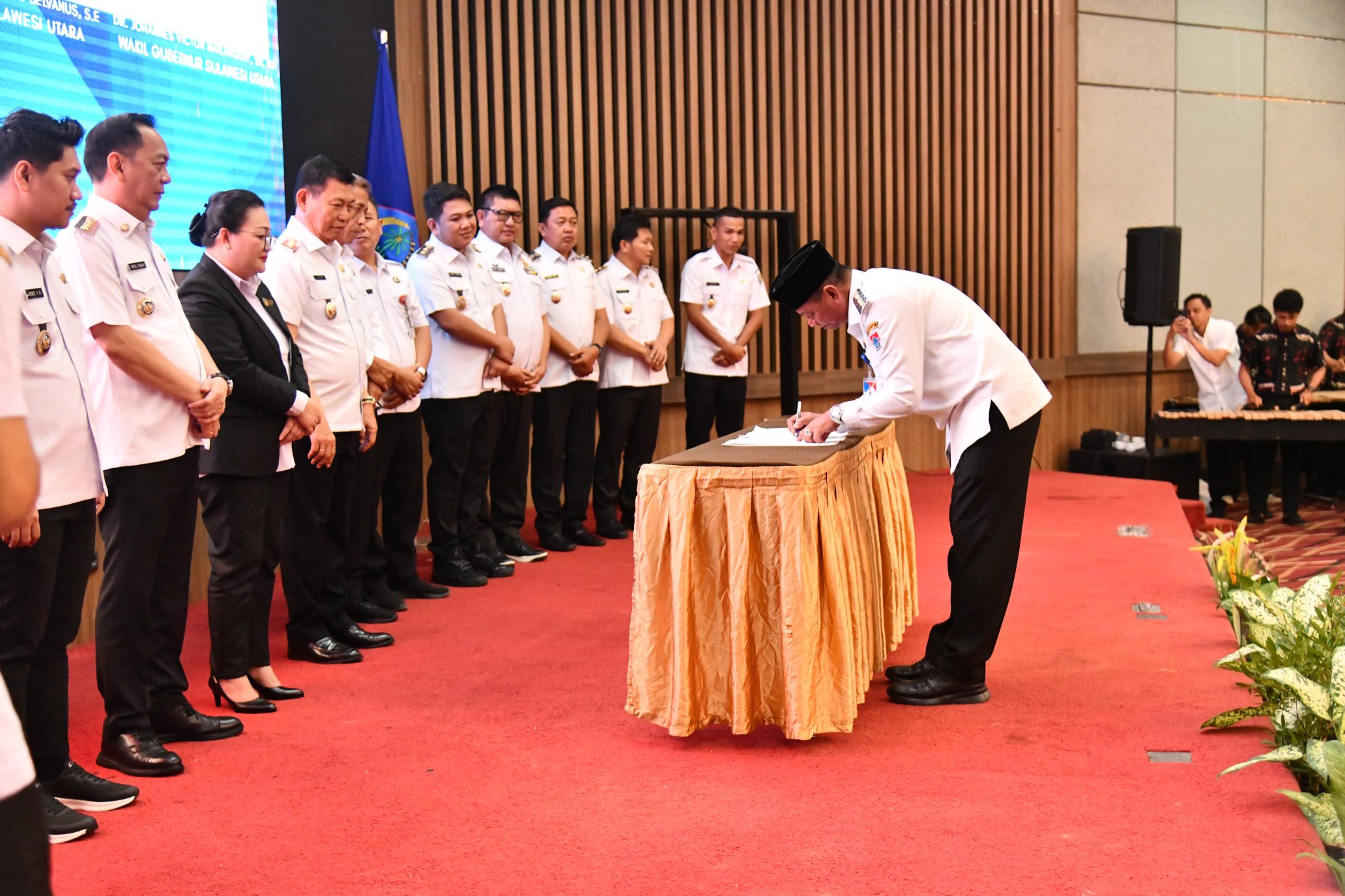 Sebagai bentuk komitmen konkret, Oskar Manoppo menandatangani kesepakatan bersama percepatan penanganan stunting tahun 2025 bersama kepala daerah lainnya.