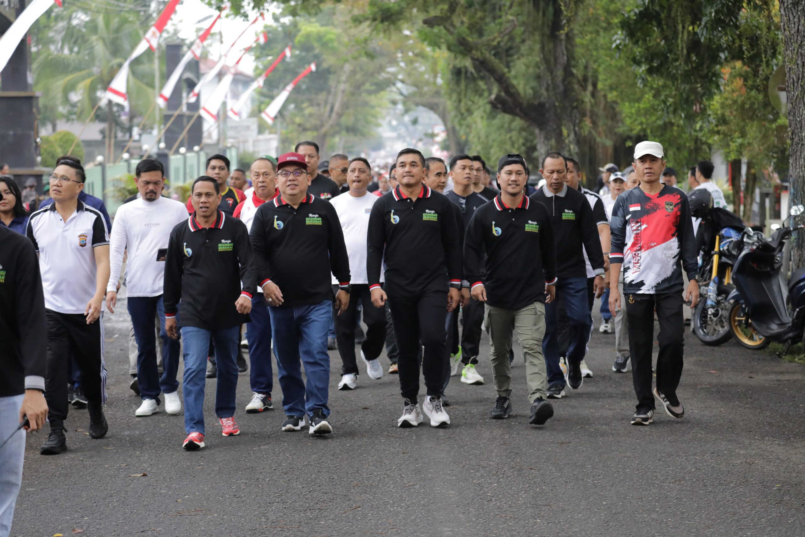 Pembagian bendera merah putih kepada masyarakat, jalan sehat, olahraga bersama, penampilan Polisi Cilik (Pocil) dan Patroli Keamanan Sekolah (PKS) utusan Polres Kotamobagu yang meraih Juara 1 tingkat Sulawesi Utara Tahun 2025, serta defile siswa-siswi PAUD se-Kota Kotamobagu.