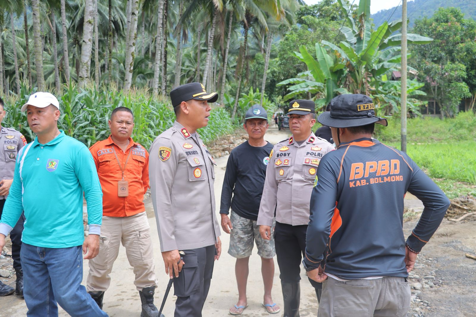 Kapolres Kotamobagu AKBP Irwanto, SIK,MH meninjau lokasi banjir pada Kamis (30/10/2025) bersama pihak balai Sungai dan BPBD Bolmong kemudian mengerahkan personil Satuan Sabhara Polres Kotamobagu untuk membantu Polsek Passi membersihkan rumah-rumah warga yang terdampak banjir.