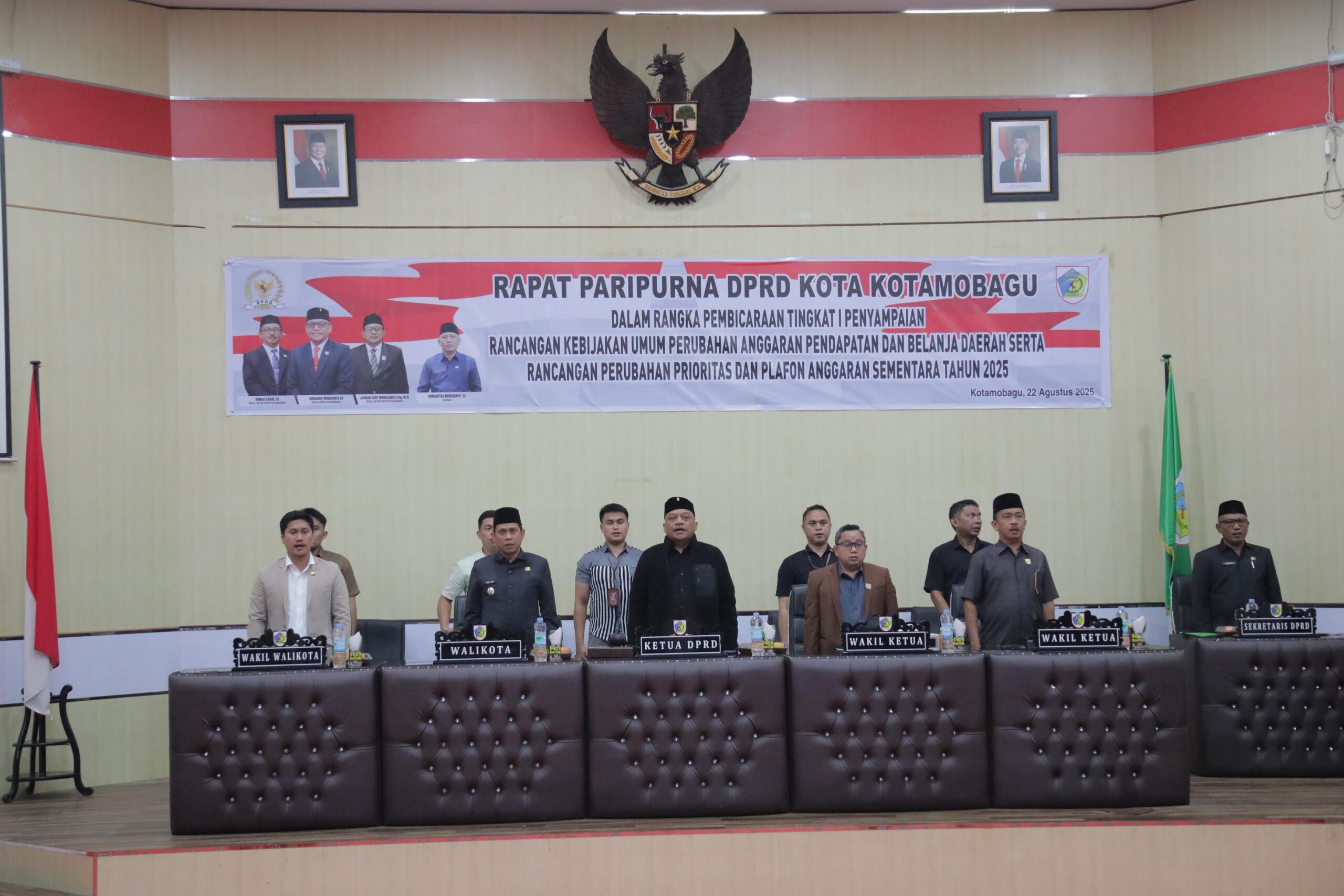 Rapat Paripurna tersebut dipimpin oleh Ketua DPRD Kota Kotamobagu, Adrianus Mokoginta, S.E., dan turut dihadiri Wakil Wali Kota Kotamobagu, Rendy Virgiawan Mangkat, S.H., M.H.