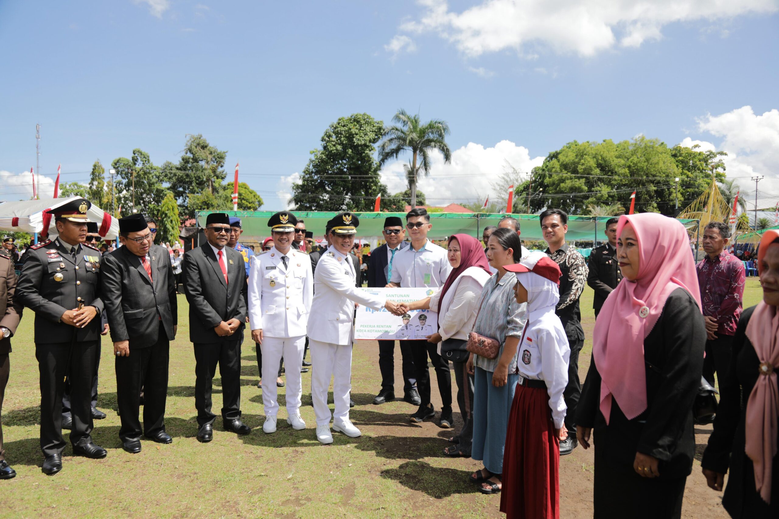 Menyerahkan hadiah kepada para pemenang lomba yang sebelumnya digelar oleh Pemerintah Daerah bersama TP PKK dalam rangka memeriahkan HUT ke-80 Kemerdekaan RI.
