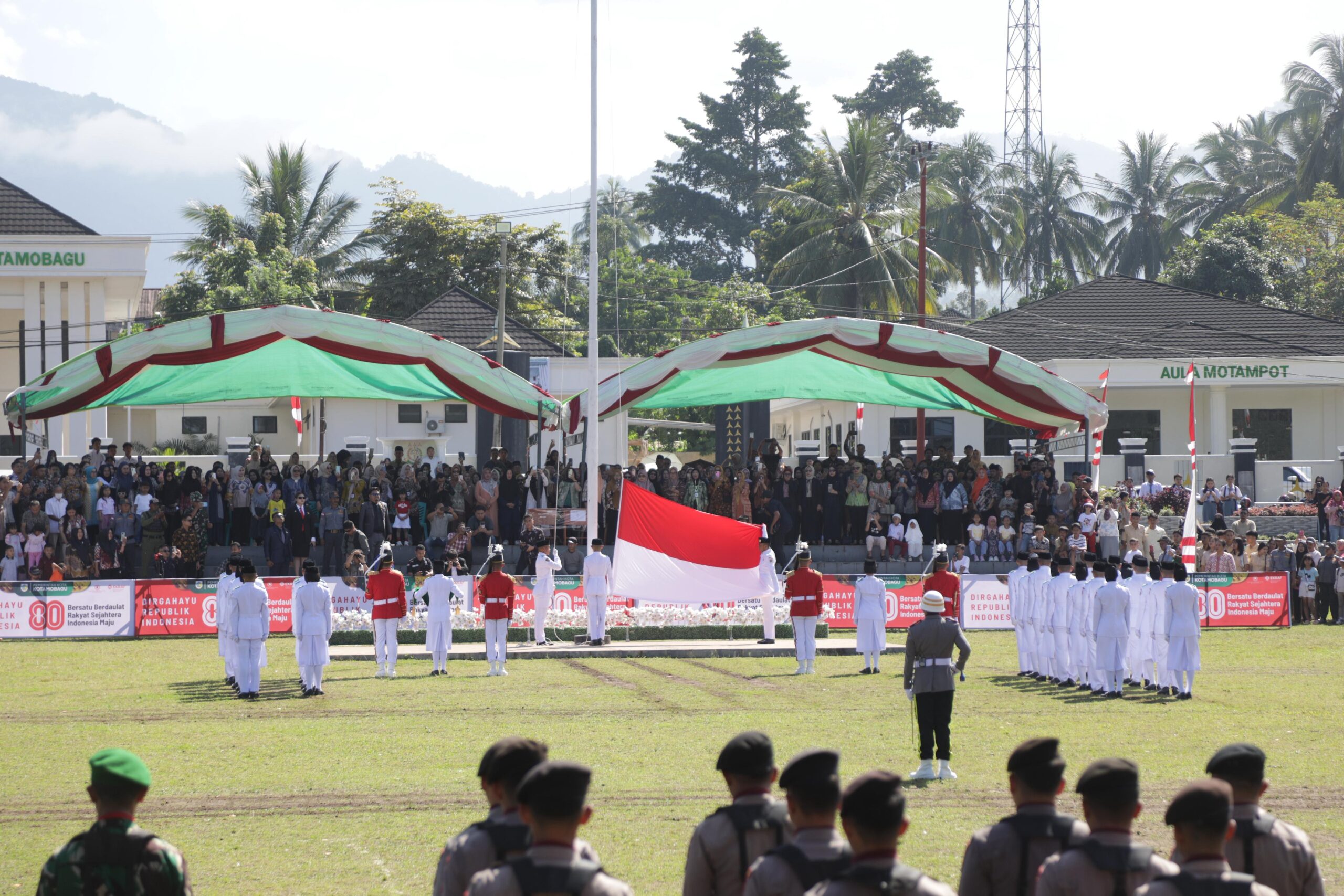 Rangkaian kegiatan meliputi pengibaran Bendera Merah Putih oleh Pasukan Pengibar Bendera Pusaka (Paskibraka) Kota Kotamobagu.