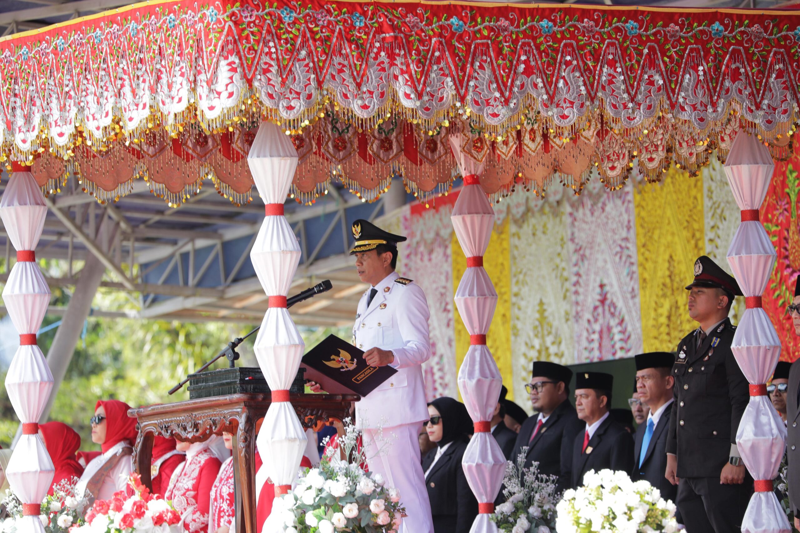 Upacara berlangsung khidmat dengan mengusung tema Bersatu Berdaulat, Rakyat Sejahtera, Indonesia Maju.