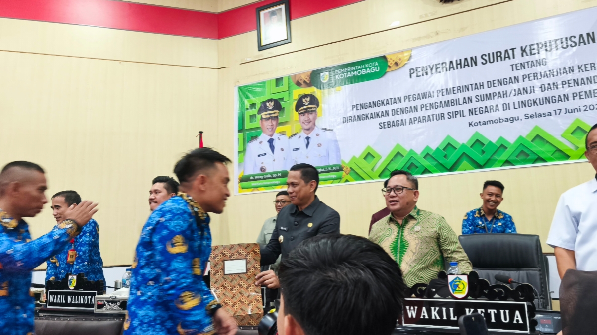 KOTAMOBAGU,SULAWESION.COM -Sebanyak 422 orang resmi menerima Surat Keputusan Wali Kota sebagai pegawai pemerintah dengan perjanjian kerja (P3K) di lingkungan Pemerintah Kota Kotamobagu. Penyerahan SK tersebut digelar pada Selasa, 17 Juni 2025, di Aula Kantor Wali Kota dan dihadiri oleh jajaran pejabat daerah dan unsur DPRD.
