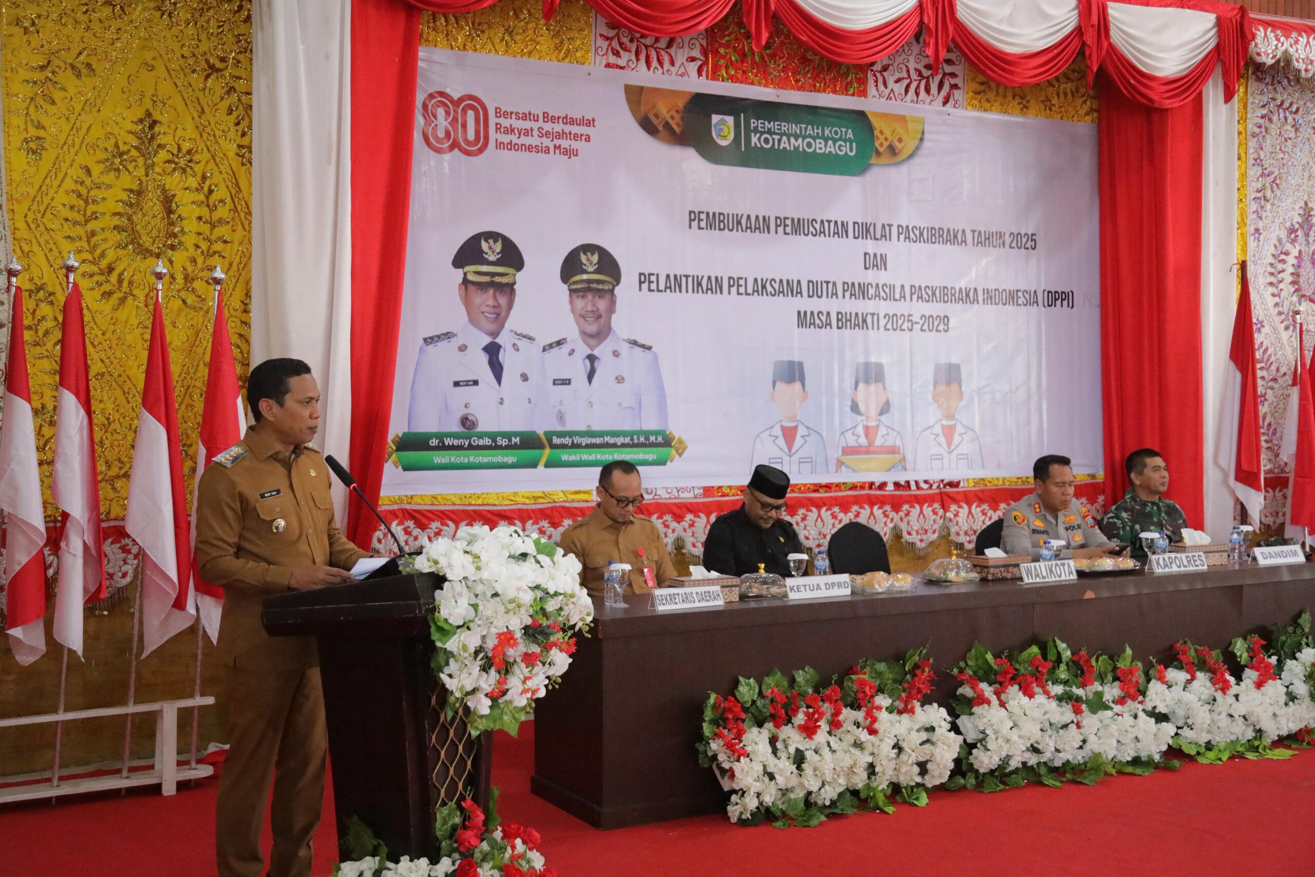 KOTAMOBAGU, SULAWESION.COM – Wali Kota Kotamogu, dr. Weny Gaib, Sp.M., Membuka Secara Resmi Pemusatan Pendidikan dan Pelatihan Calon Paskibraka Kota Kotamobagu Tahun 2025 dan Melantik Pelaksana Duta Pancasila Paskibraka Indonesia Kota Kotamobagu Masa Bhakti 2025 – 2029. Senin 28 Juli 2025, Aula Rumah Dinas Wali Kota Kotamobagu