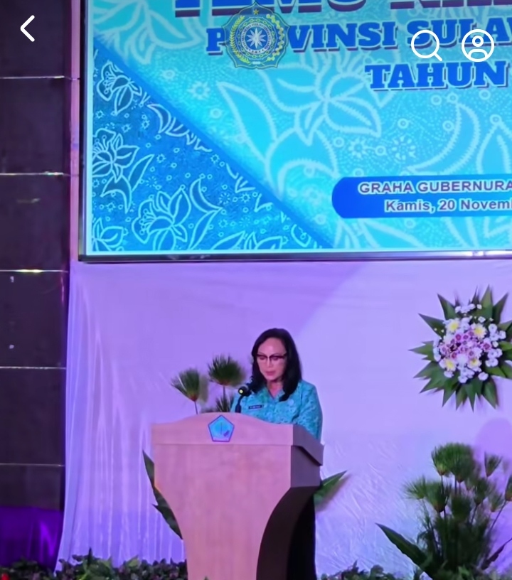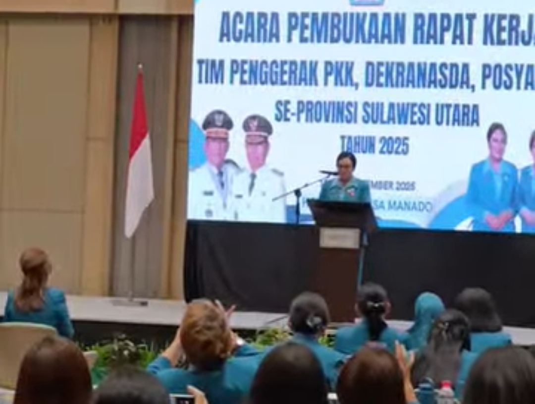 SULAWESION,MANADO — Ny Anik Yulius Selvanus, melaporan pelaksanaan program kerja pada pembukaan Rapat Kerja Daerah (Rakerda) PKK, Dekranasda, dan Posyandu se-Sulawesi Utara Tahun 2025.