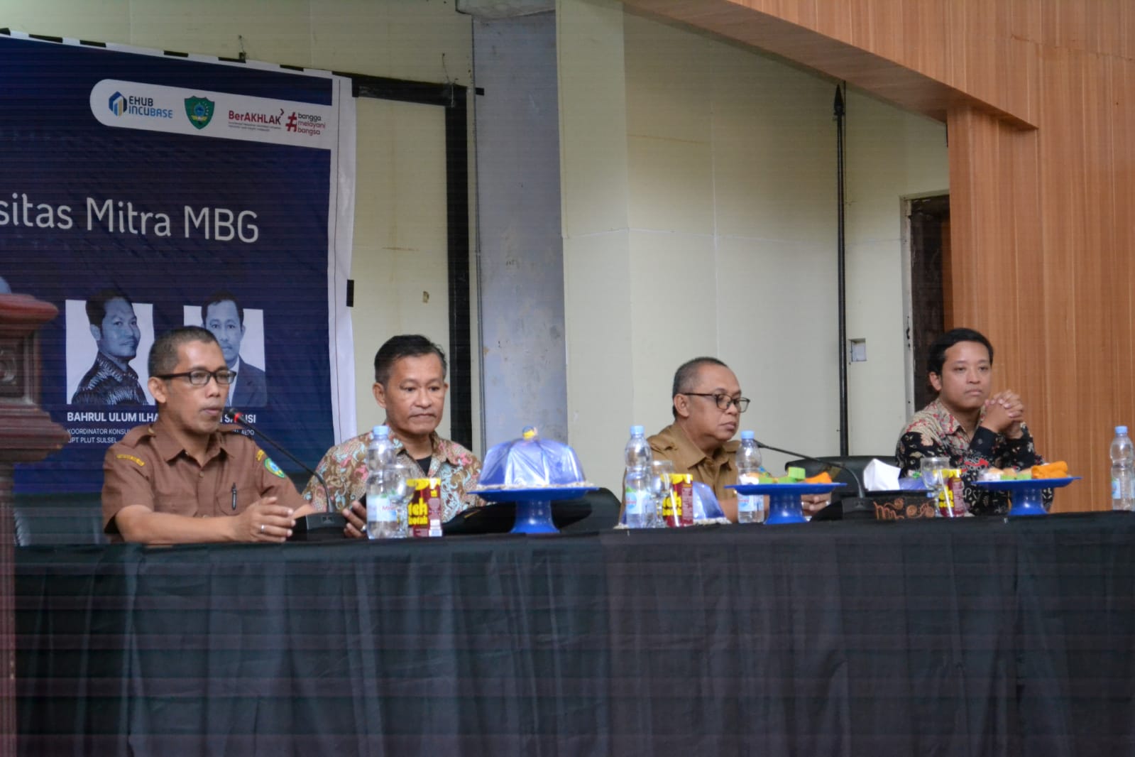 Workshop peningkatan kapasitas usaha mitra MBG secara resmi dibuka oleh Kadis Koperindag Kabupaten Maros, A. Samsophyan.