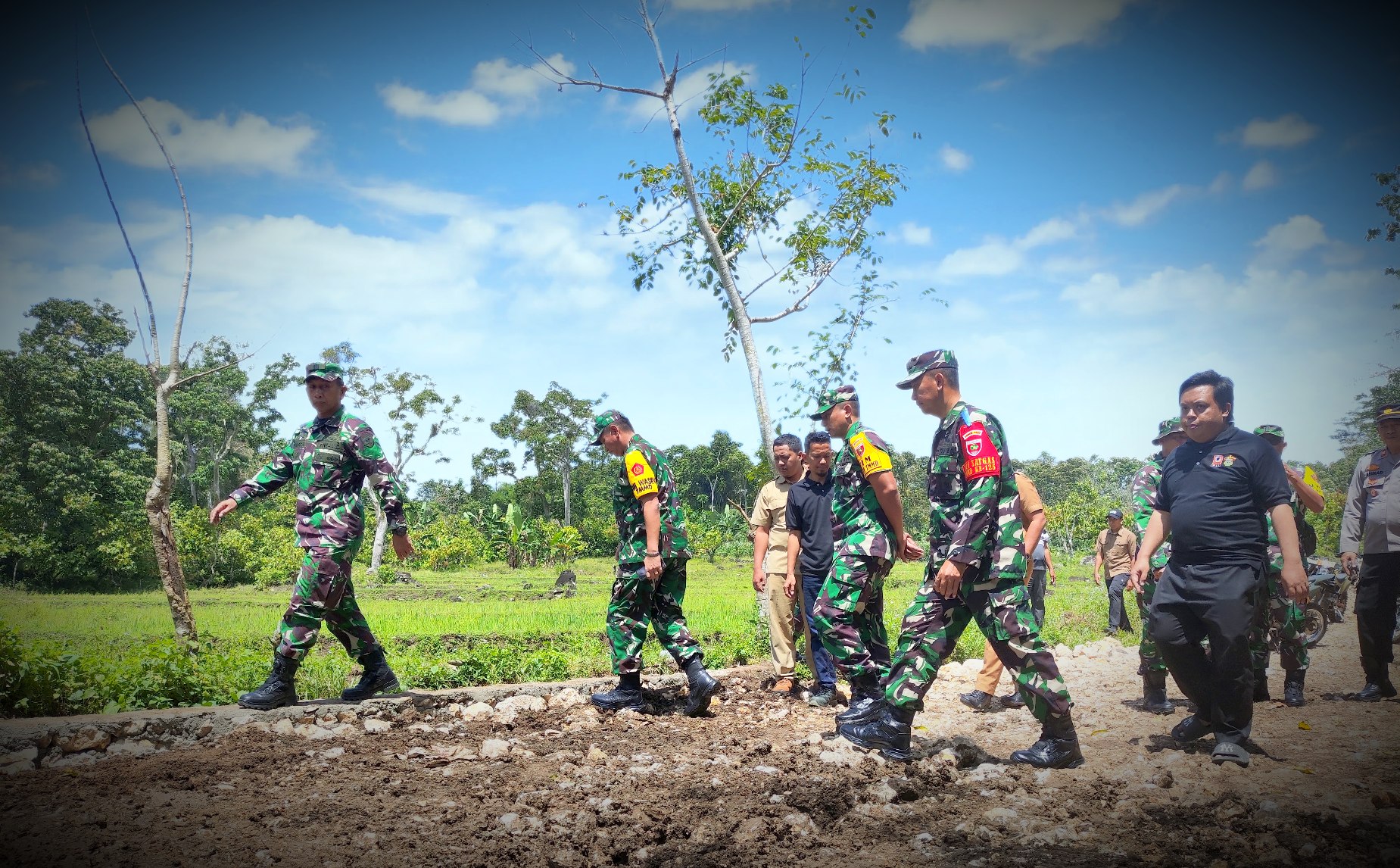 Dalam peninjauan tersebut, Marthen mengungkapkan bahwa progres pengerjaan TMMD telah mencapai 80 persen. Ini sudah termasuk dalam pengerjaan fisik dan non fisik pengerasan jalan desa.