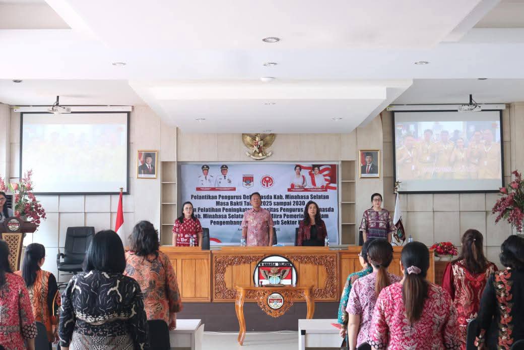 Kegiatan tersebut dirangkaikan dengan Pelantikan Pengurus Dekranasda Kabupaten Minahasa Selatan Periode 2025–2030 yang digelar di Lantai 4 Kantor Bupati Minahasa Selatan.