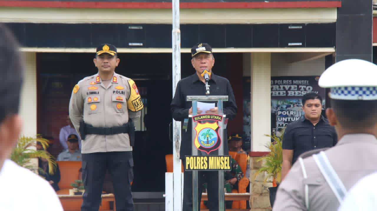 Bertindak sebagai pemimpin Apel Bupati Minsel Franky Donny Wongkar SH (FDW) sekaligus membacakan amanat Kapolda Sulawesi Utara (Sulut) Irjen Pol. Dr. Roycke Harry Langie SIK, MH.