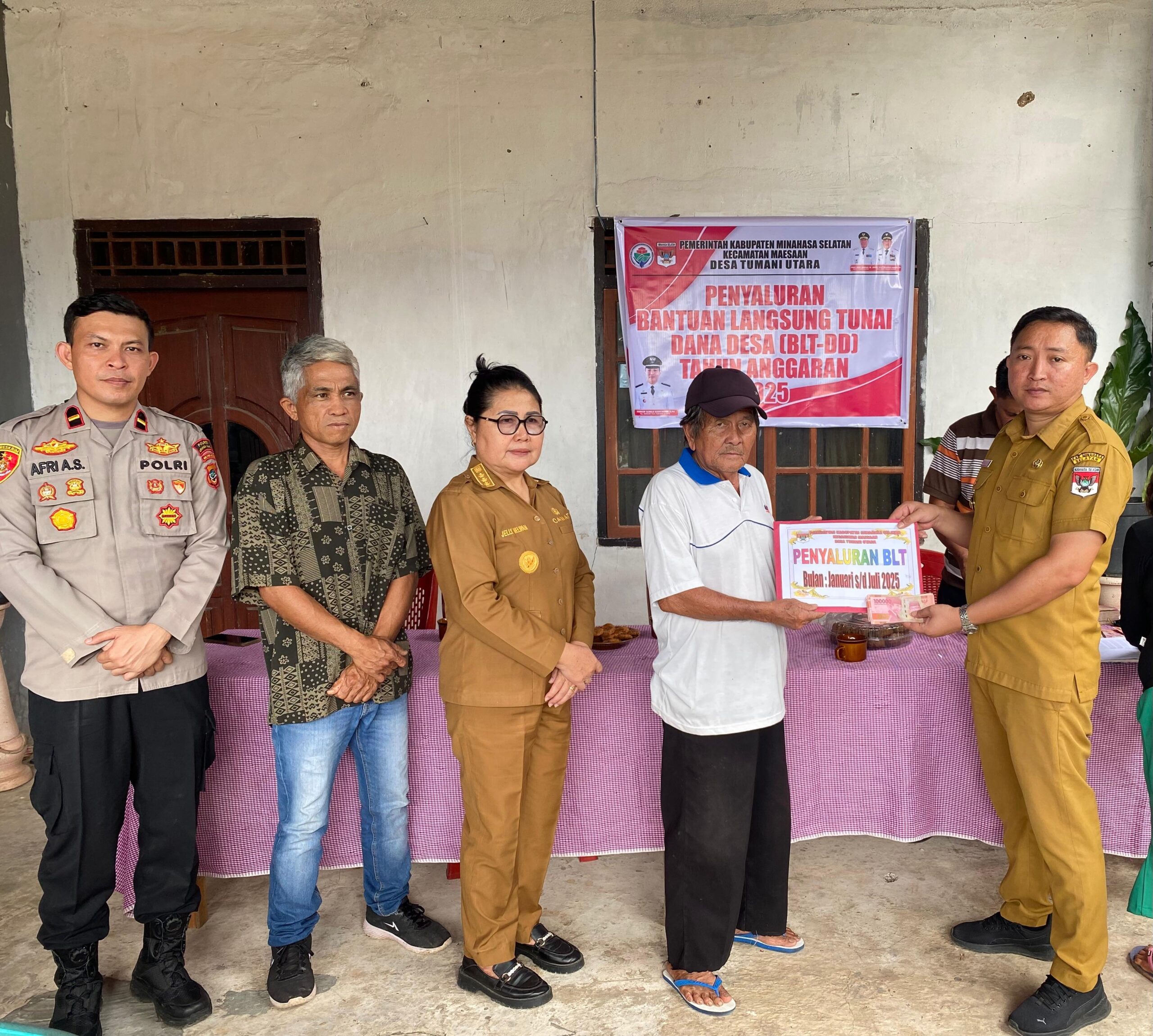 MINSEL,SULAWESION.COM- Pemerintah Desa (Pemdes) Tumani Utara Kecamatan Maesaan, Kabupaten Minahasa Selatan (Minsel), Selasa (24/6/2025) menyalurkan Bantuan Langsung Tunai Dana Desa (BLT-DD) Tahun 2025 kepada 28 Keluarga Penerima Manfaat (KPM) untuk periode bulan Januari – Juli atau 7 bulan sekaligus.