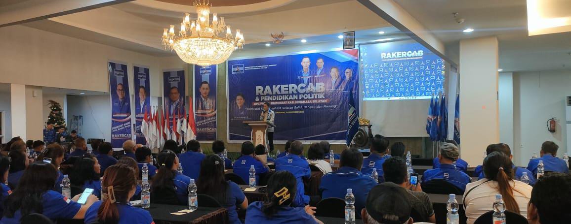 Bupati Minahasa Selatan (Minsel) Franky Donny Wongkar SH (FDW) secara resmi membuka Rapat Kerja Cabang (Rakercab) yang digabungkan dengan Pendidikan Politik Dewan Pimpinan Cabang (DPC) Partai Demokrat Minsel di Hotel Sutan raja Amurang Jumat (19/12/2025).