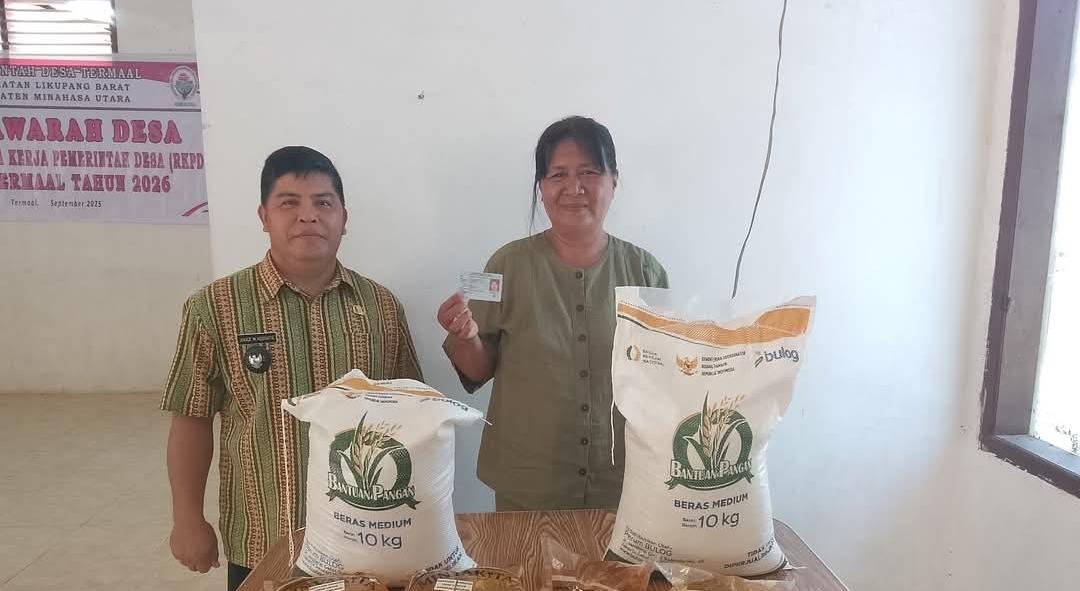 SULAWESION, LIKUPANG BARAT — Suasana hangat terasa di Desa Termaal, Kecamatan Likupang Barat, ketika warga bersama pemerintah desa menyampaikan ungkapan terima kasih kepada Presiden Republik Indonesia serta Gubernur dan Wakil Gubernur Sulawesi Utara atas penyaluran bantuan pangan yang baru saja diterima masyarakat.