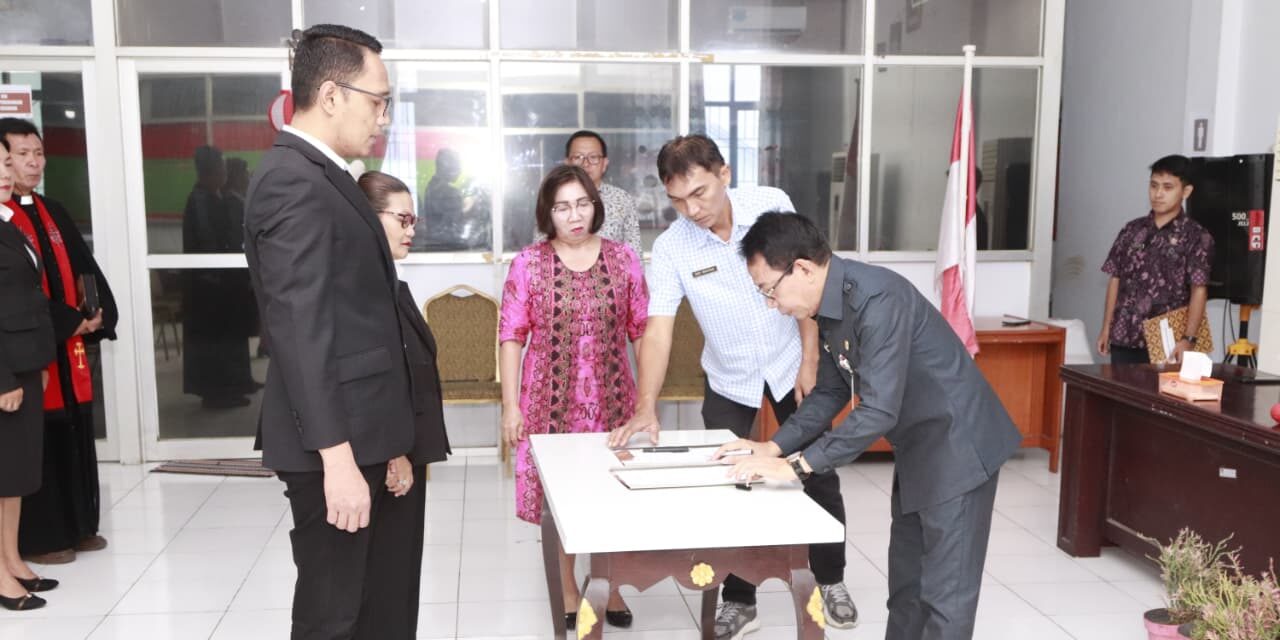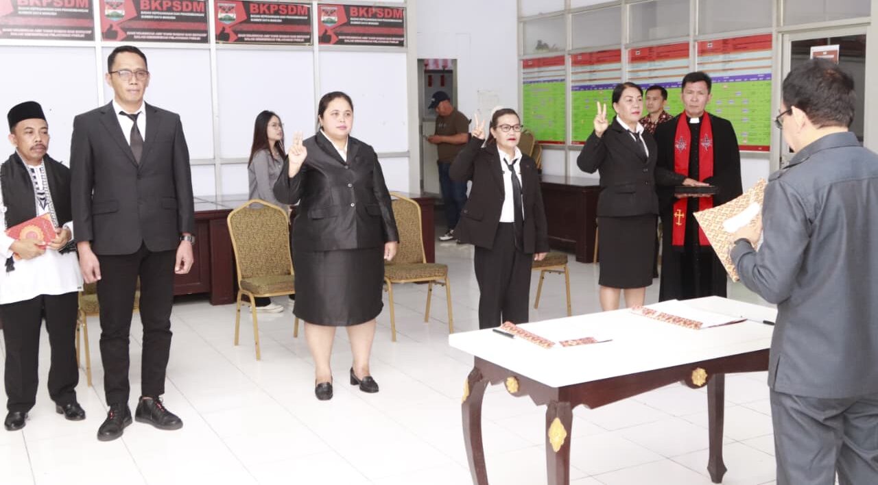 Pelantikan ini disaksikan langsung oleh Kepala Badan Kepegawaian dan Pengembangan Sumber Daya Manusia (BKPSDM) Kabupaten Minahasa Tenggara, Sartje Taogan, S.Pd.,MM.