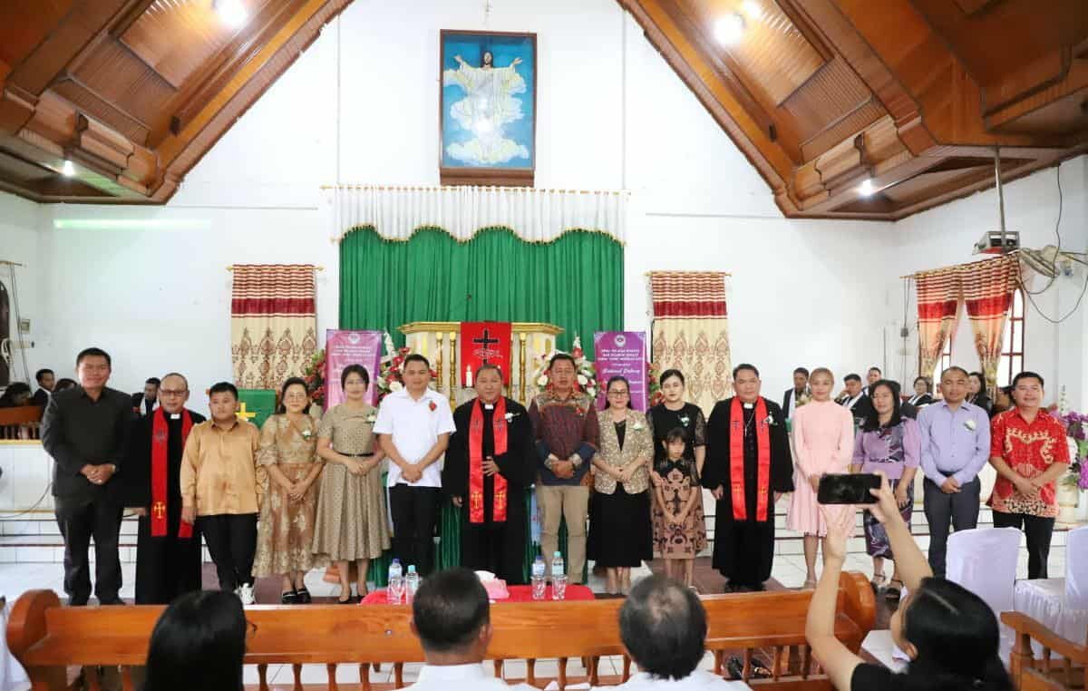 MITRA,SULAWESION.COM-Bupati Minahasa Tenggara (Mitra) Ronald Kandoli menghadiri ibadah pelantikan sekaligus serah terima Ketua Badan Pekerja Majelis Jemaat (BPMJ) GMIM Sion Moreah Satu, Wilayah Ratatotok, Minggu (7/9/2025). Acara ini menandai berakhirnya pelayanan Pdt. Maxi Milliam Memah, S.Th, dan dilanjutkan oleh Pdt. Jemmy Ferdinand Katuuk, S.Th.