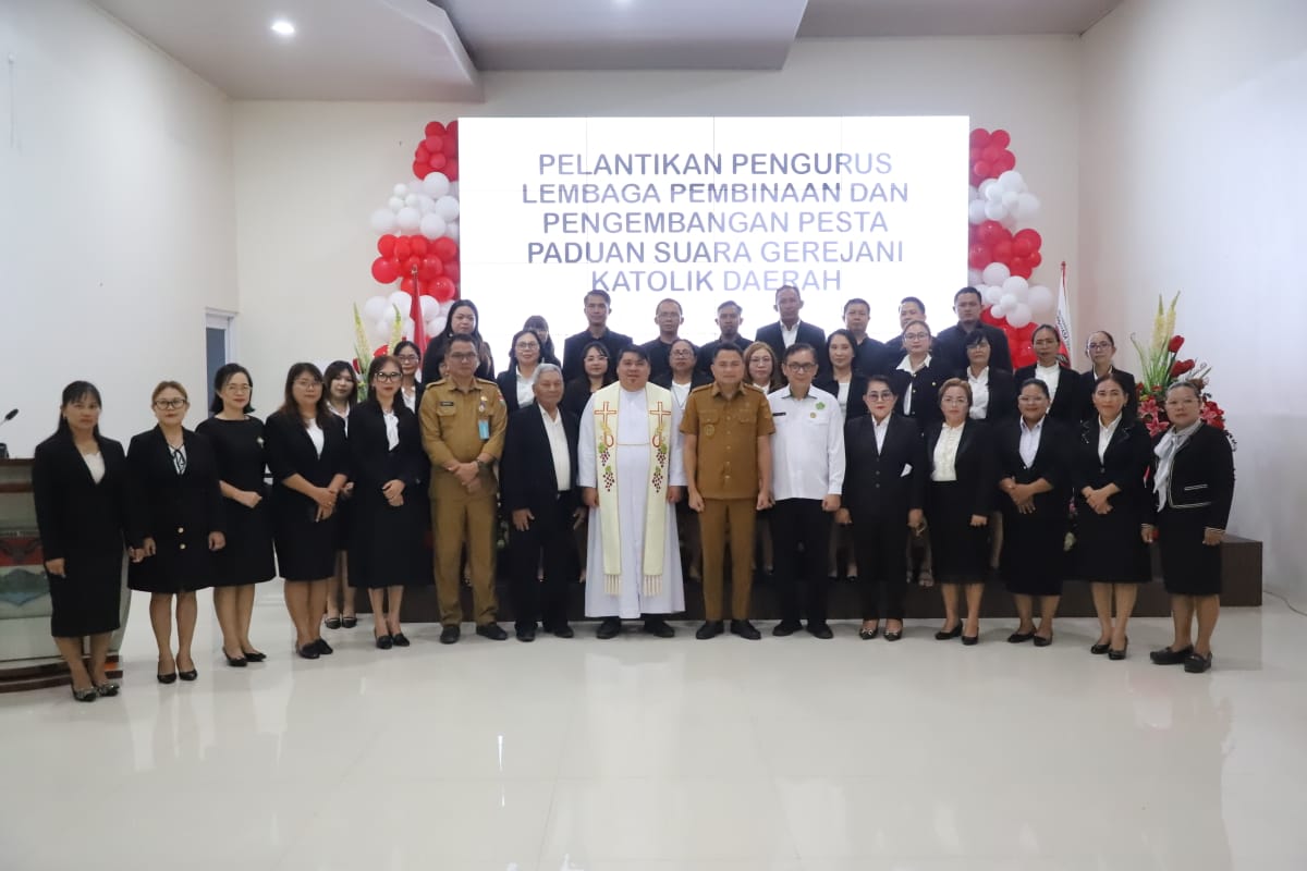 MITRA,SULAWESION.COM-Bupati Minahasa Tenggara, Ronald Kandoli, secara resmi melantik Pengurus Lembaga Pembinaan dan Pengembangan Pesta Paduan Suara Gerejani Katolik Daerah (LP3KD) Kabupaten Minahasa Tenggara.