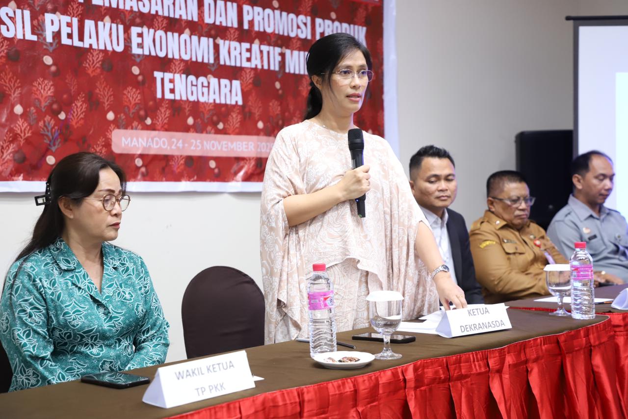 Dalam sambutannya, Stefa Kandoli Antou menegaskan bahwa kegiatan ini diharapkan menjadi momentum penting untuk memperkuat ekosistem ekonomi kreatif di Minahasa Tenggara. Ia menilai, pelaku ekraf perlu didorong tidak hanya melalui peningkatan inovasi dan daya saing, tetapi juga melalui perlindungan hukum atas karya-karya yang dihasilkan.