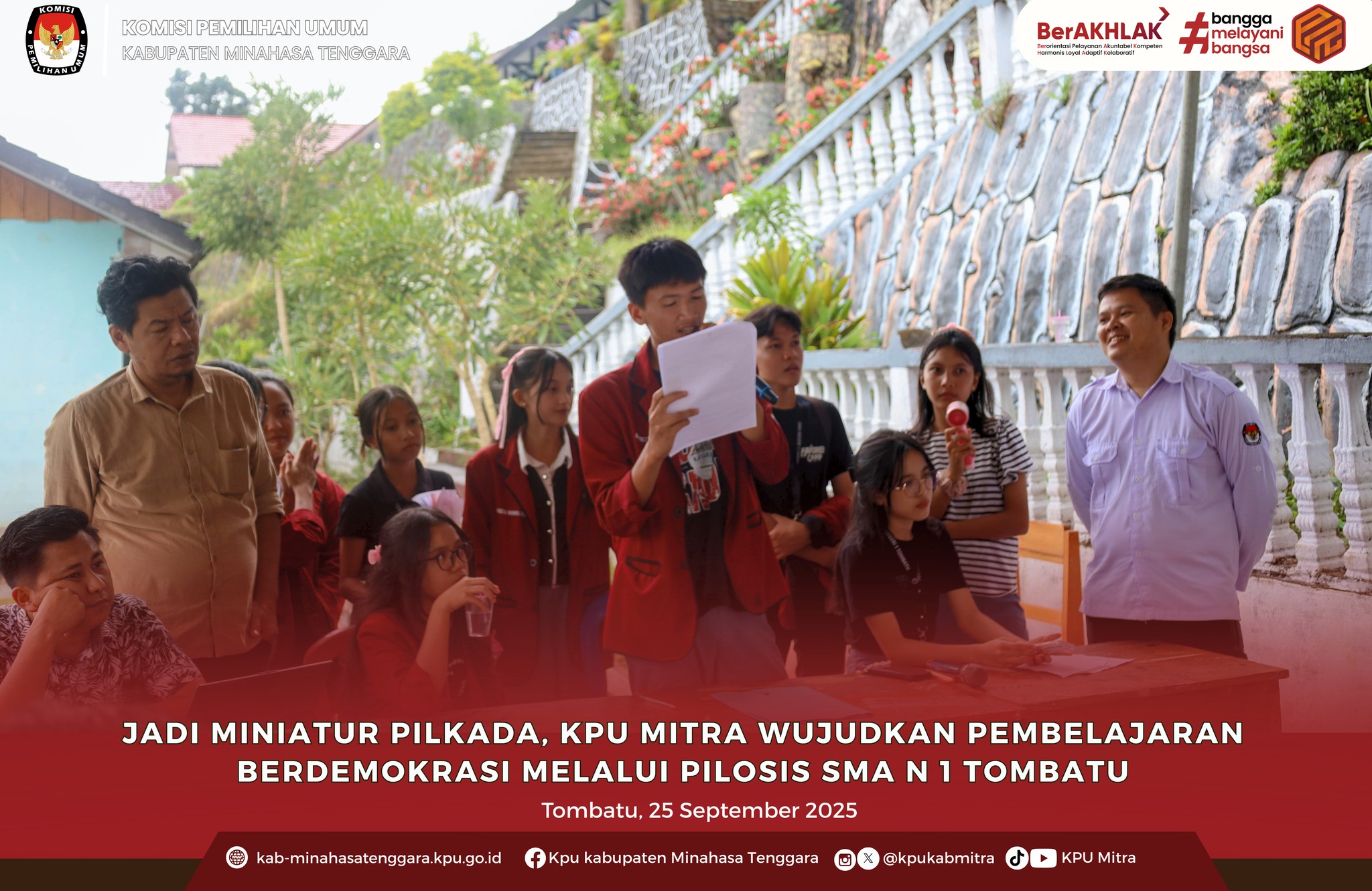 MITRA,SULAWESION.COM-Pembelajaran demokrasi tidak hanya penting bagi pemilih, tetapi juga calon pemilih dari kalangan siswa. Upaya itu terus digalakkan Komisi Pemilihan Umum (KPU) Kabupaten Minahasa Tenggara melalui pendampingan Pemilihan Ketua dan Wakil Ketua Organisasi Siswa Intra Sekolah (Pilosis),Kamis (25/9/2025).