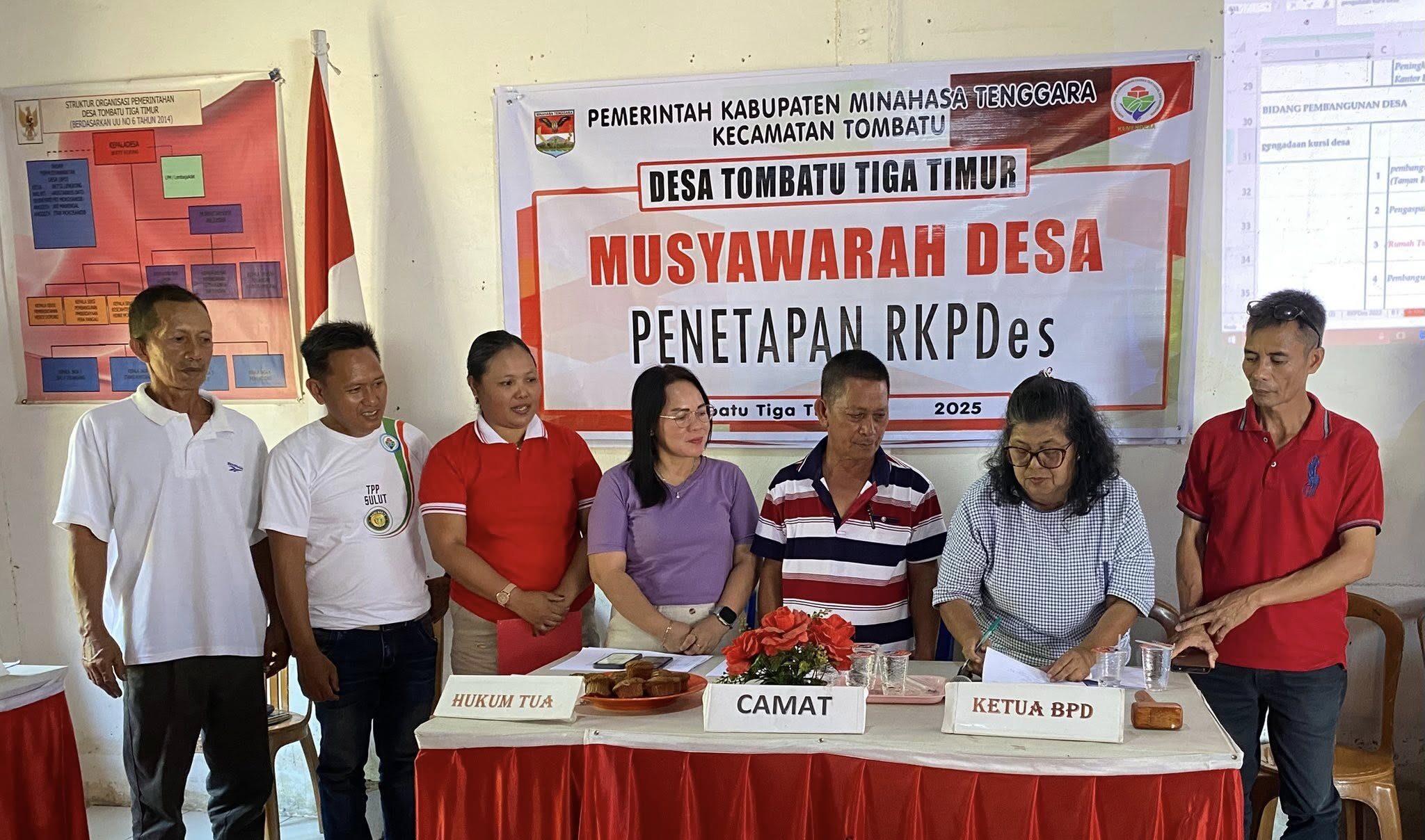 MITRA,SULAWESION.COM- Pemerintah Desa Tombatu Tiga Timur, Kecamatan Tombatu, Kabupaten Minahasa Tenggara, melaksanakan Musyawarah Perencanaan Pembangunan Desa (Musrenbang) dalam rangka pembahasan Rencana Kerja Pemerintah Desa (RKPDes) tahun anggaran 2025, bertempat di balai desa Tombatu Tiga Timur, Jumat (03/10/2025).
