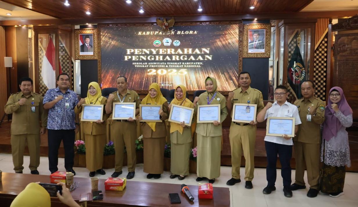 Adapun tujuh sekolah penerima Adiwiyata Nasional 2025 yakni SD Negeri 1 Turirejo, SMP Negeri 3 Blora, SMA Negeri 1 Tunjungan, SMA Negeri 1 Jepon, SMA Negeri 1 Cepu, SMA Negeri 1 Randublatung, dan SMK Migas Cepu.