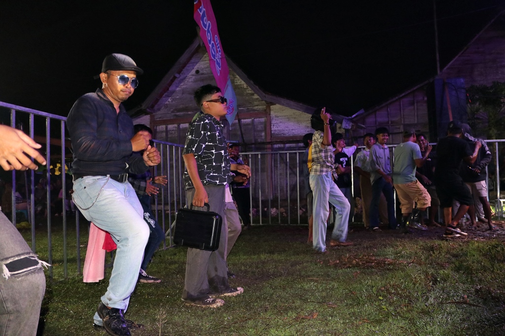 Puluhan warga, tua-muda, hadir mengenakan busana retro, berjoget di bawah gemerlap lampu panggung, diiringi lagu-lagu klasik seperti Boneka Cantik, Piano, hingga Kopi Susu. Suasana berubah menjadi ruang lintas waktu yang menghubungkan kenangan dengan kekinian.
