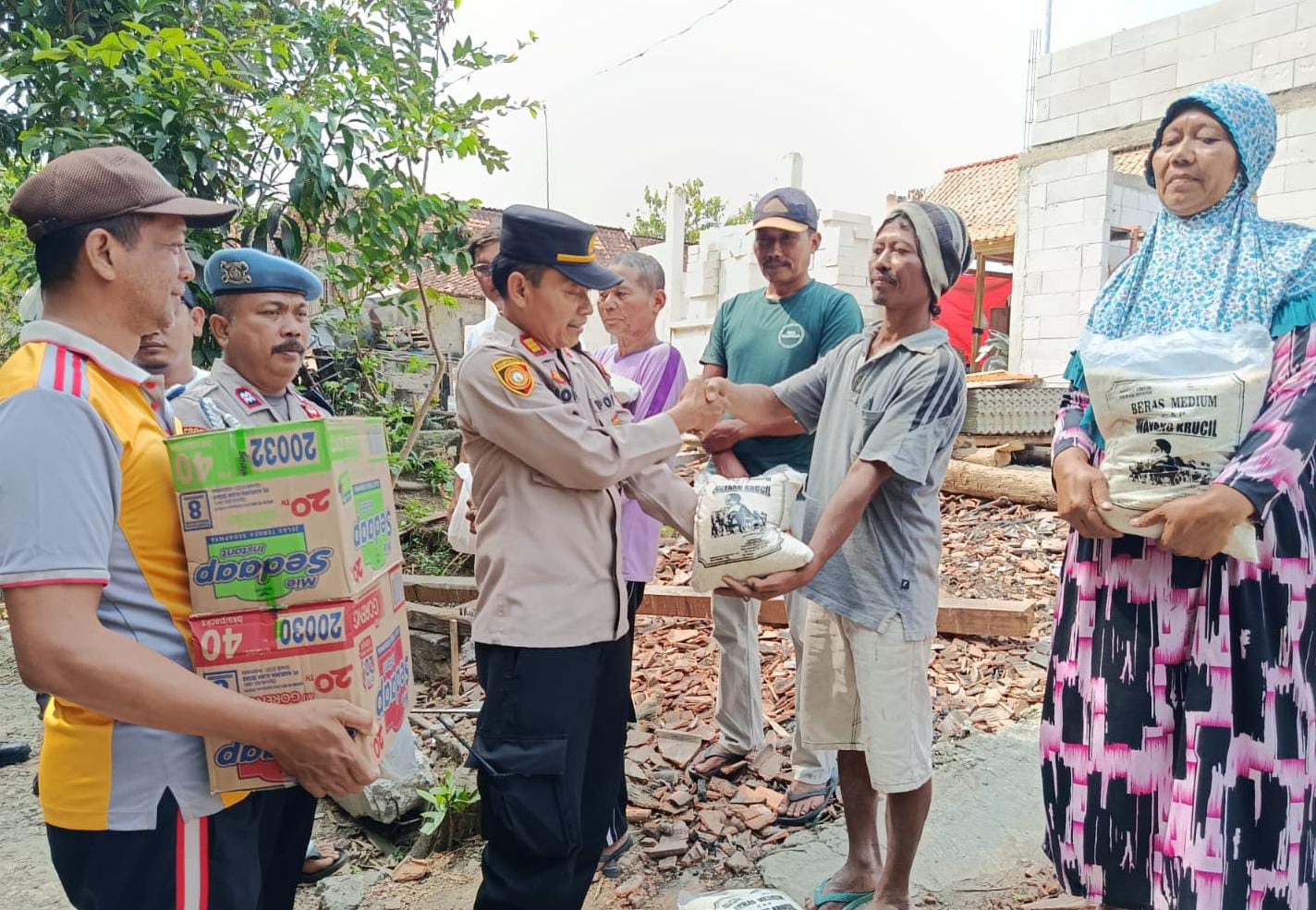 Kapolsek Tunjungan AKP Subiyono memimpin langsung penyaluran bantuan sembako untuk korban kebakaran rumah di Dukuh Ngudi, Desa Kalangan, Kecamatan Tunjungan.