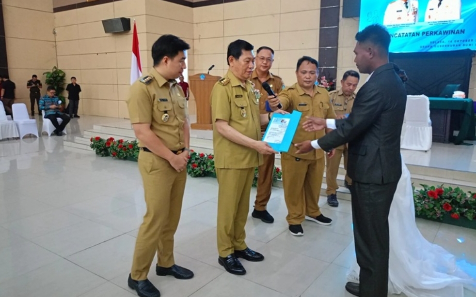 Usai prosesi pernikahan, Mailangkay yang mewakili Gubernur Yulius Selvanus secara simbolis menyerahkan surat nikah kepada para pasangan yang telah mengikuti pencatatan perkawinan. Ia juga berpesan agar dokumen tersebut dijaga dengan baik karena menjadi dasar penting dalam pengurusan administrasi kependudukan.