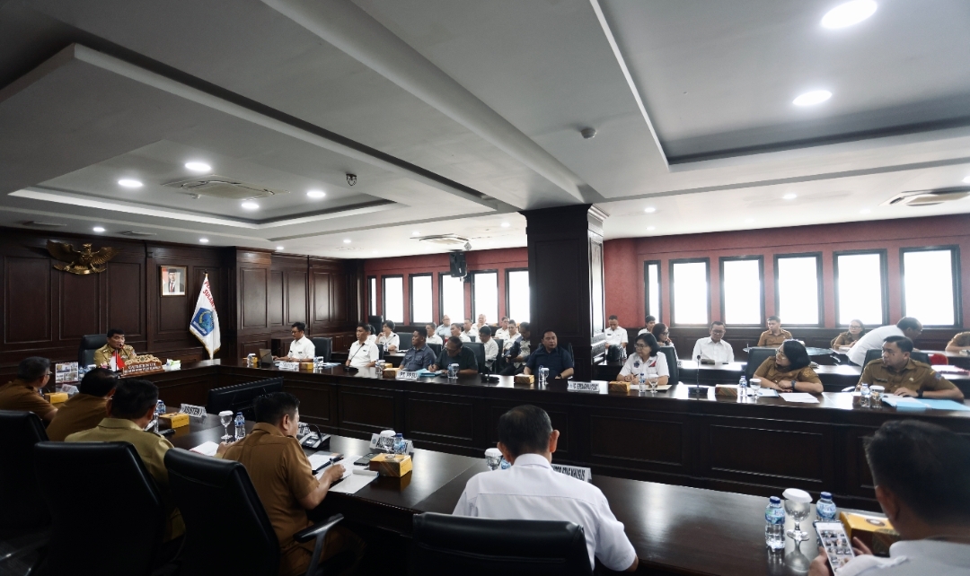 SULAWESION,MANADO — Gubernur Sulawesi Utara, Mayjen TNI (Purn) Yulius Selvanus, memimpin rapat kerja bersama jajaran PT Membangun Sulut Maju, salah satu BUMD andalan Pemprov Sulut, pada Senin (8/12/2025). Pertemuan tersebut berlangsung di Ruang Rapat Gubernur, Lantai 6 Kantor Gubernur Sulawesi Utara.