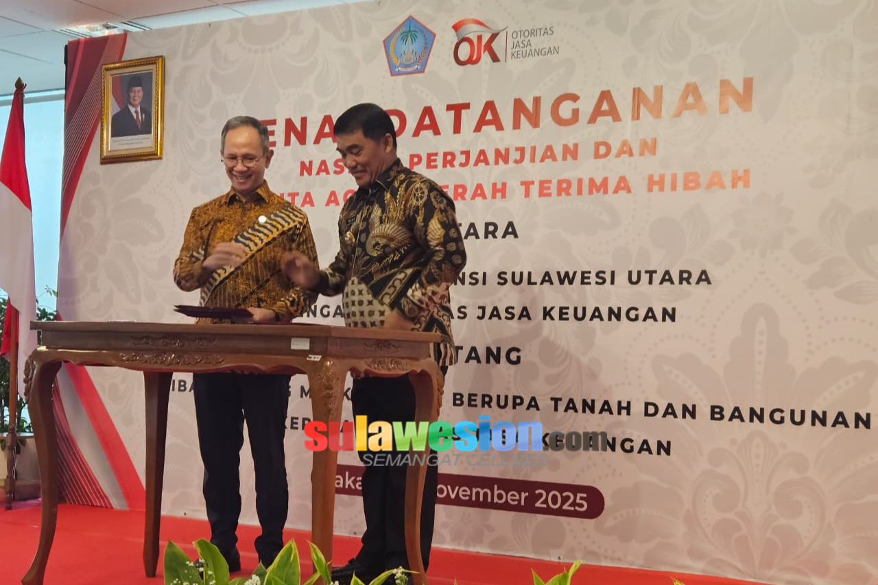 SULAWESION,JAKARTA– Pemerintah Provinsi (Pemprov) Sulawesi Utara resmi menandatangani Naskah Perjanjian Hibah Daerah (NPHD) dan Berita Acara Serah Terima (BAST) aset daerah kepada Otoritas Jasa Keuangan (OJK), dalam acara yang digelar di Jakarta, Rabu (5/11/2025).
