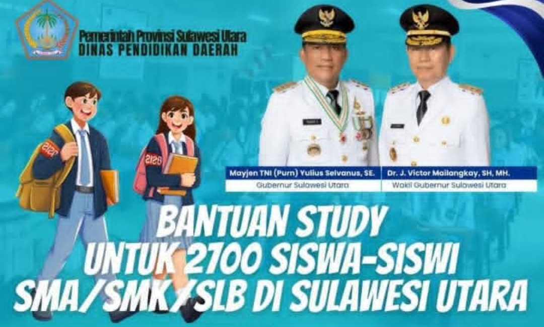 SULAWESION,MANADO — Pemerintah Provinsi Sulawesi Utara membuka program bantuan studi bagi 2.100 siswa-siswi SMA, SMK, dan SLB, yang bakal disalurkan langsung oleh Gubernur Sulawesi Utara bersama Wakil Gubernur, Dr. J. Victor Mailangkay.