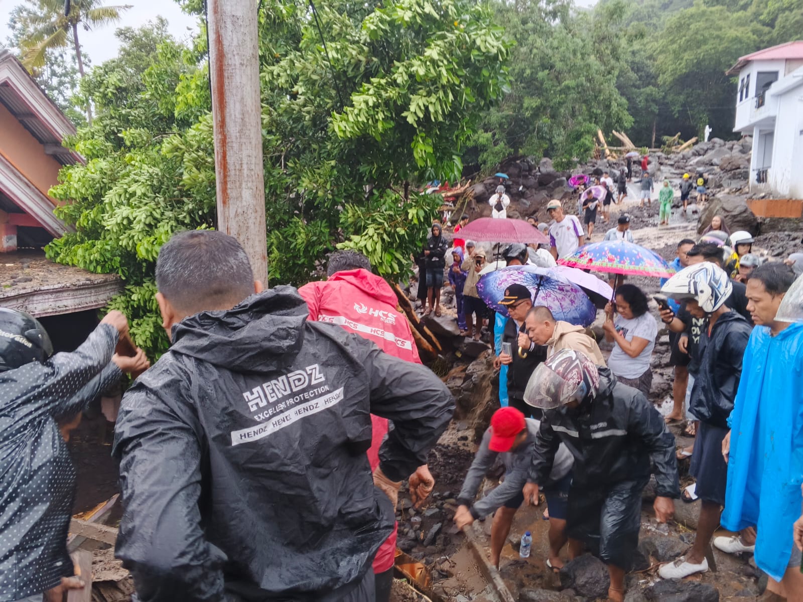 Alhasil, arus air dalam jumlah besar menyeret material berupa bebatuan, pasir bercampur lumpur hingga batang dan cabang pepohonan berukuran besar yang akhirnya menghantam pemukiman warga.