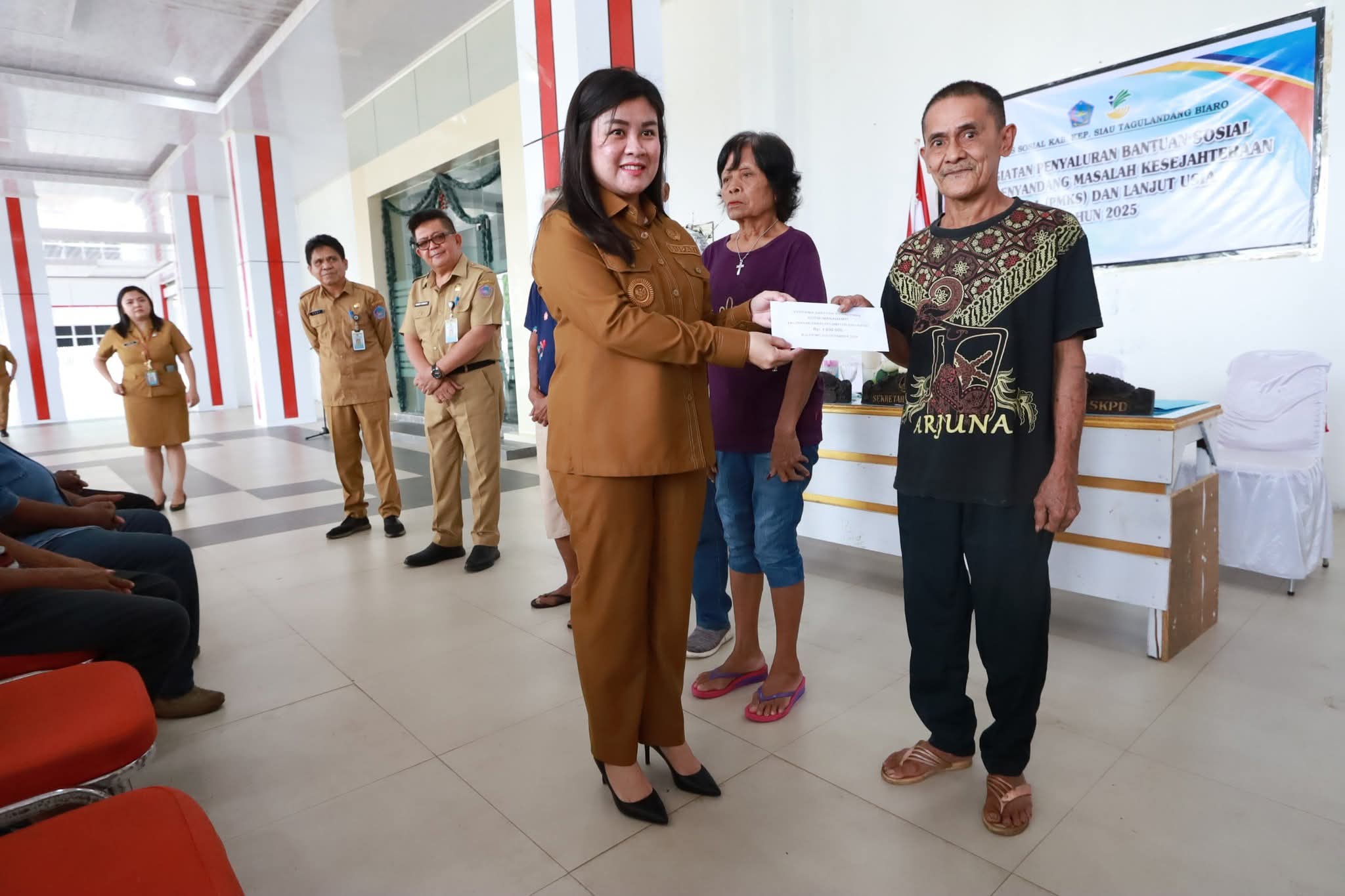 “Pemerintah daerah hadir untuk memastikan masyarakat, terutama PMKS dan lansia, tetap merasakan perhatian dan kasih sayang,” ujar Bupati Chyntia di hadapan para penerima bantuan.