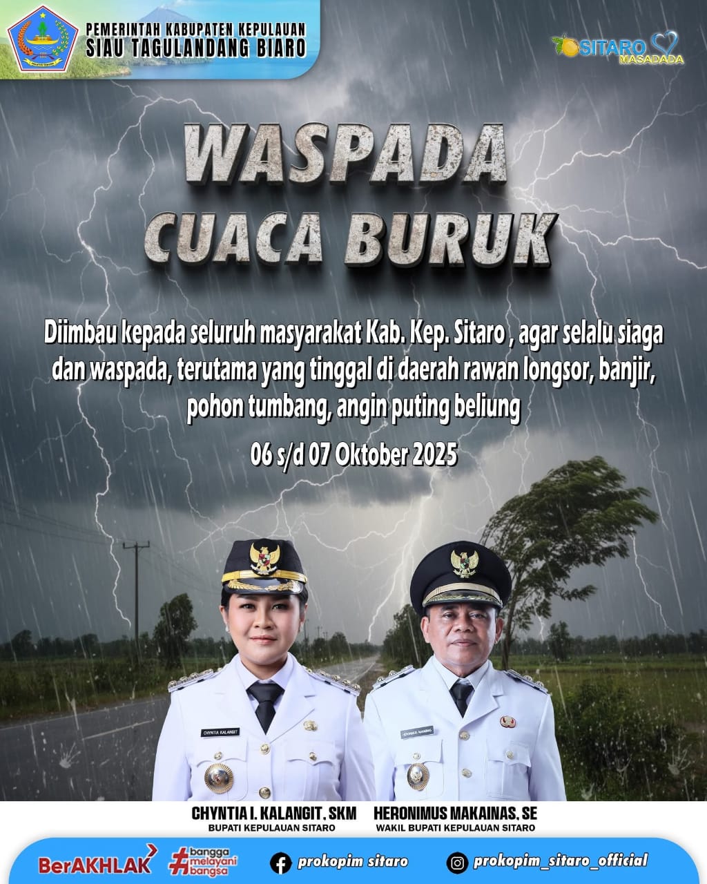 SITARO, SULAWESION.COM – Kabupaten Siau Tagulandang Biaro (Sitaro) diperhadapkan dengan ancaman bencana alam dari dampak peningkatan aktivitas Gunung Karangetang serta cuaca ekstrem yang terjadi sejak Senin 6 September 2025.