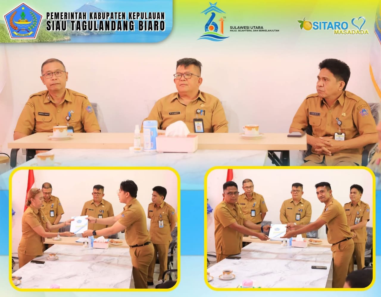 Proses serah terima jabatan Kabag Umum dan Kabag Prokopim Setda Kabupaten Sitaro yang disaksikan langsung Sekda dan para Asisten Sekda. (Ist)