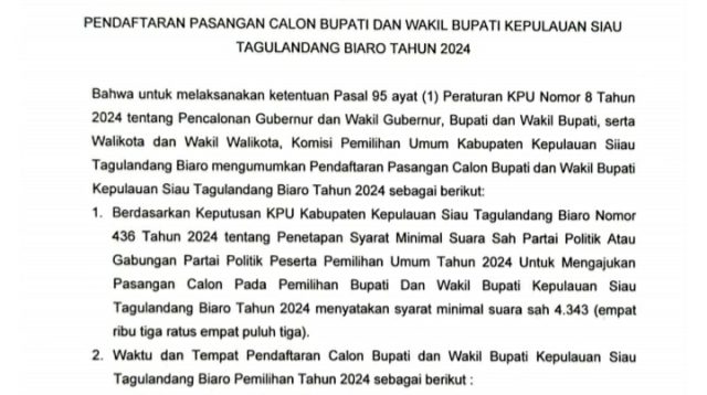 SITARO, SULAWESION.COM - Komisi Pemilihan Umum (KPU) Kabupaten Kepulauan Sitaro secara resmi mengumumkan pendaftaran […]