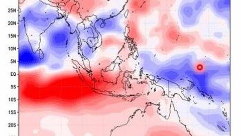 Pembentukan awan dan hujan terkonsentrasi di atas Samudra Pasifik. Sebaliknya wilayah Indonesia mengalami minim awan dan hujan.