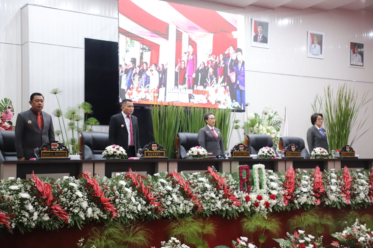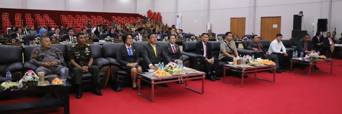 MITRA,SULAWESION.COM- Bupati Minahasa Tenggara (Mitra), Ronald Kandoli, bersama Wakil Bupati Fredy Tuda menghadiri Rapat Paripurna DPRD Kabupaten Minahasa Tenggara dalam rangka mendengarkan Pidato Kenegaraan Presiden Republik Indonesia pada HUT ke-80 Kemerdekaan RI, Jumat (15/8/2025). Kegiatan tersebut digelar di ruang rapat DPRD Kabupaten Mitra.