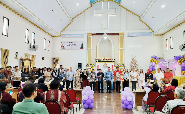 MITRA,SULAWESION.COM-Bupati Minahasa Tenggara (Mitra) Ronald Kandoli bersama jajaran Pemerintah Kabupaten Minahasa Tenggara melaksanakan Safari Natal di Kecamatan Ratatotok dan Kecamatan Belang, Sabtu (13/12/2025). Kegiatan tersebut dipusatkan di GMIM Anugerah Ratatotok Selatan sebagai bagian dari rangkaian perayaan Natal Tahun 2025.