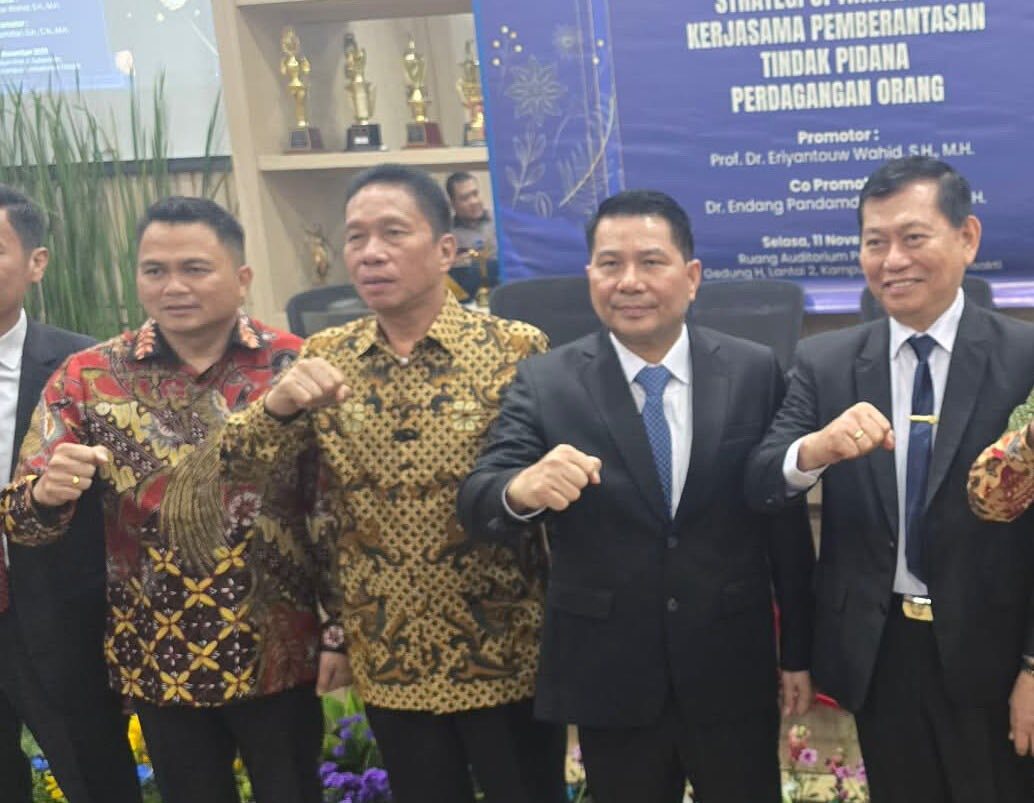 JAKARTA, SULAWESION.COM – Bupati Minahasa Tenggara (Mitra) Ronald Kandoli menghadiri prosesi ujian promosi doktor Kapolda Sulawesi Utara, Irjen Pol. Dr. Roycke Harri Langie, S.I.K., M.H., yang digelar di Gedung H lantai 2 Universitas Trisakti, Jakarta Barat, Selasa (11/11/2025). Kehadiran Bupati Mitra tersebut menjadi bentuk dukungan dan apresiasi atas capaian akademik yang diraih salah satu putra terbaik Sulawesi Utara itu.
