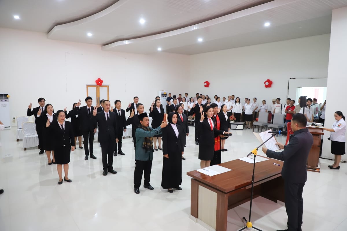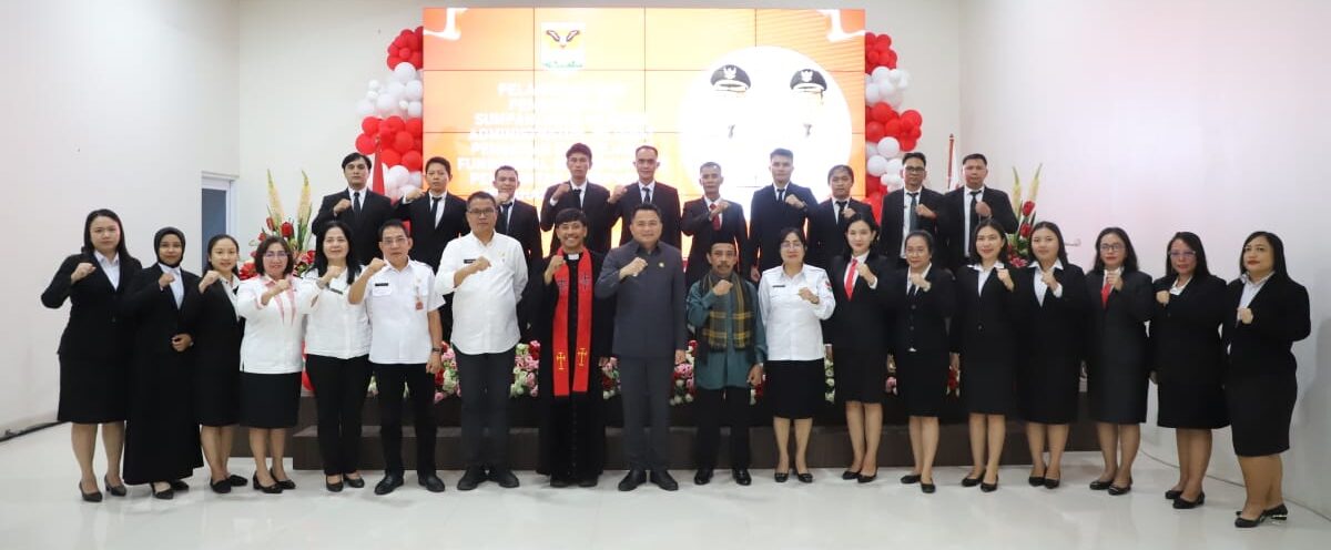 MITRA,SULAWESION.COM-Bupati Minahasa Tenggara (Mitra) Ronald Kandoli melantik dan mengambil sumpah/janji jabatan 3 pejabat administrator, 2 pejabat pengawas, serta 15 pejabat fungsional di lingkungan Pemerintah Kabupaten Minahasa Tenggara. Acara pelantikan dilaksanakan di lantai 3 Kantor Bupati, Rabu (24/9/2025).