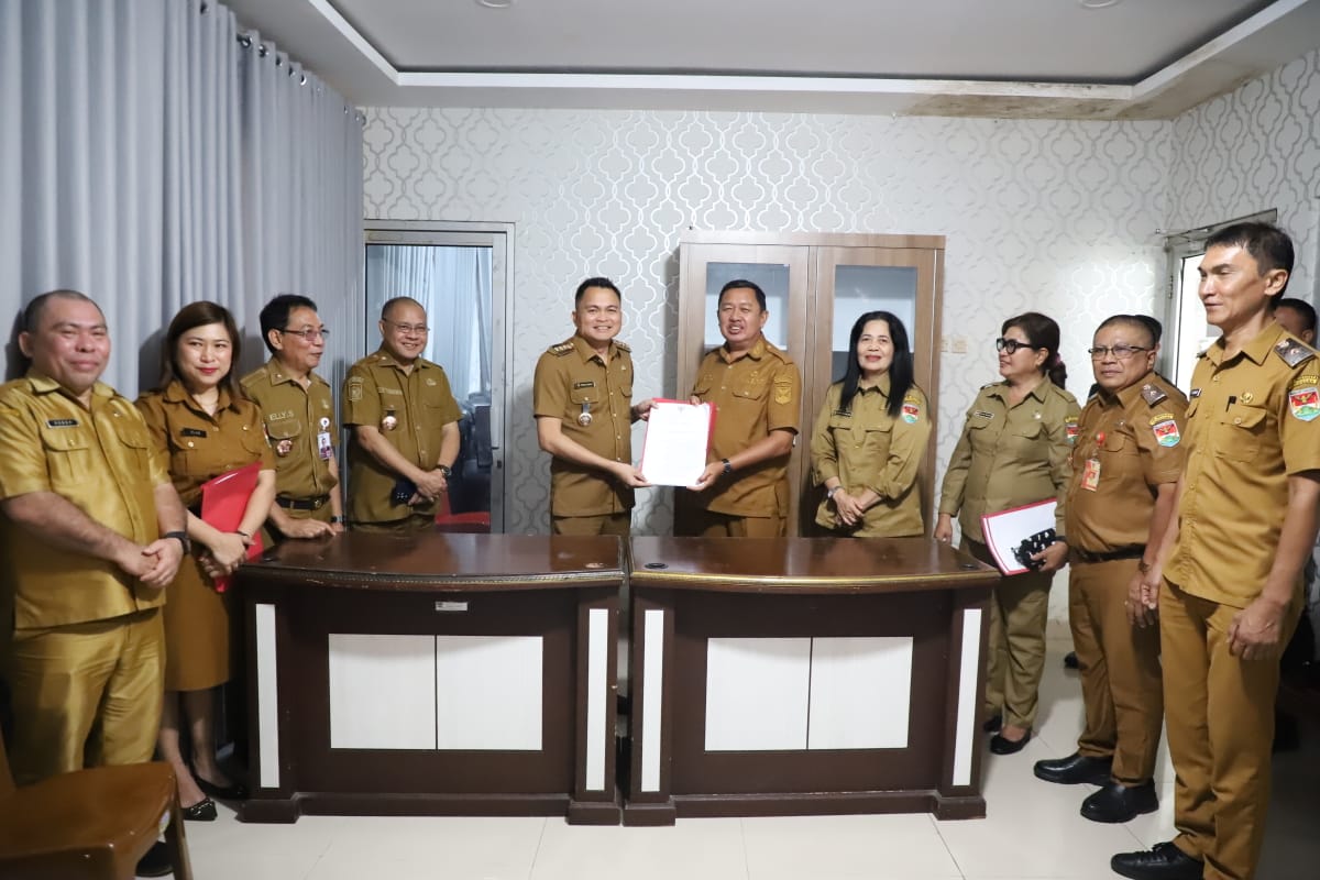 MITRA,SULAWESION.COM-Bupati Minahasa Tenggara (Mitra) Ronald Kandoli menandatangani Surat Keputusan (SK) Dana Hibah Komite Olahraga Nasional Indonesia (KONI) Kabupaten Minahasa Tenggara, yang kemudian diserahkan langsung kepada Wakil Bupati Fredy Tuda, selaku Ketua KONI Kabupaten Mitra.
