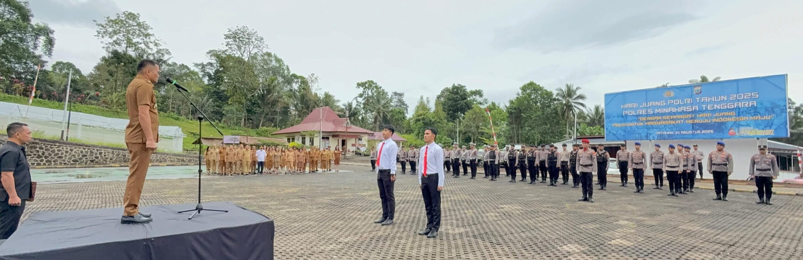 Upacara tersebut diikuti Wakil Bupati Minahasa Tenggara Fredi Tuda, Sekretaris Daerah David Lalandos, para asisten pemkab, Kapolres Minahasa Tenggara AKBP Handoko Sanjaya, S.I.K., M.Han., Wakapolres Kompol Sammy Pandelaki, pejabat utama Polres, para kepala SKPD, serta camat se-Mitra. Peserta upacara terdiri dari personel Sat Samapta, Satlantas, Satreskrim, Satintelkam, gabungan staf, serta seluruh perwira Polres Minahasa Tenggara.